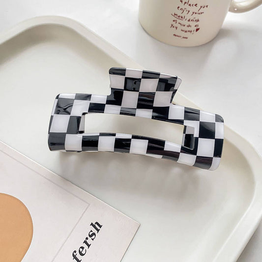 SQUARE CHECKERED HAIR CLAW CLIPS