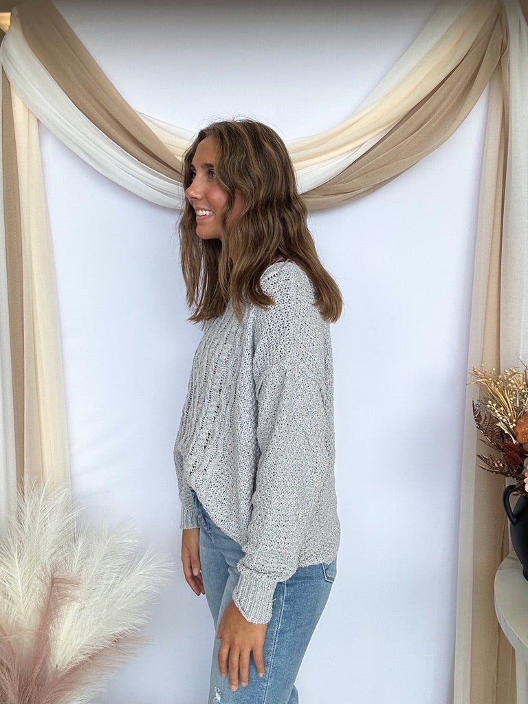 This bold chunky knit sweater features a striking boat neckline and dropped shoulders for an edgy look. With long sleeves and a relaxed, boxy fit, it’s your go-to for cozy warmth and casual style throughout fall and winter. Perfect for effortless, everyday wear that makes a statement. Pictured is Chloee wearing a medium.
