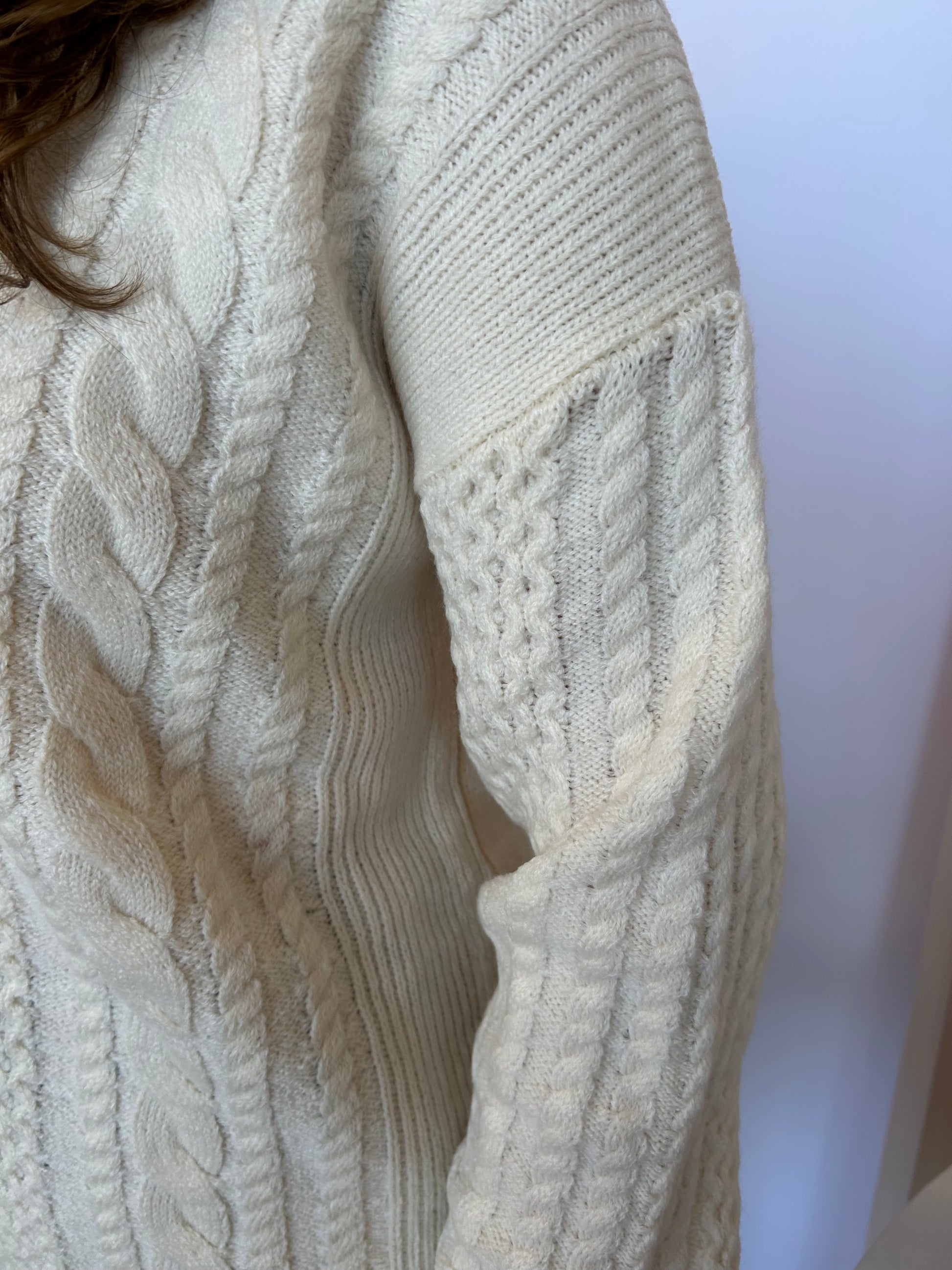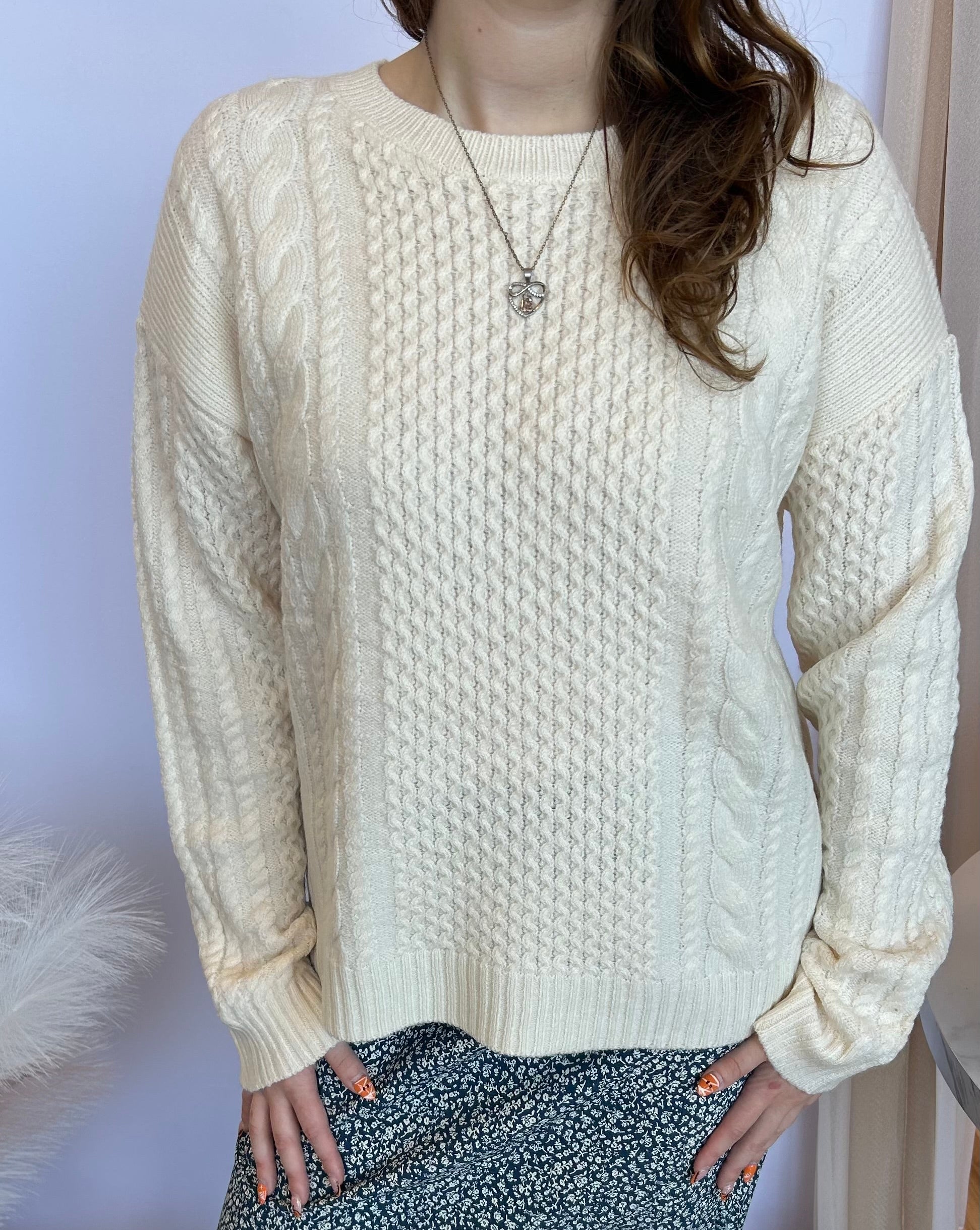 Boldly embrace comfort with this cable knit sweater top. Featuring a soft touch fabric, long sleeves, and a relaxed, oversized fit with drop shoulders and a round neckline, it redefines effortless style with an edge.