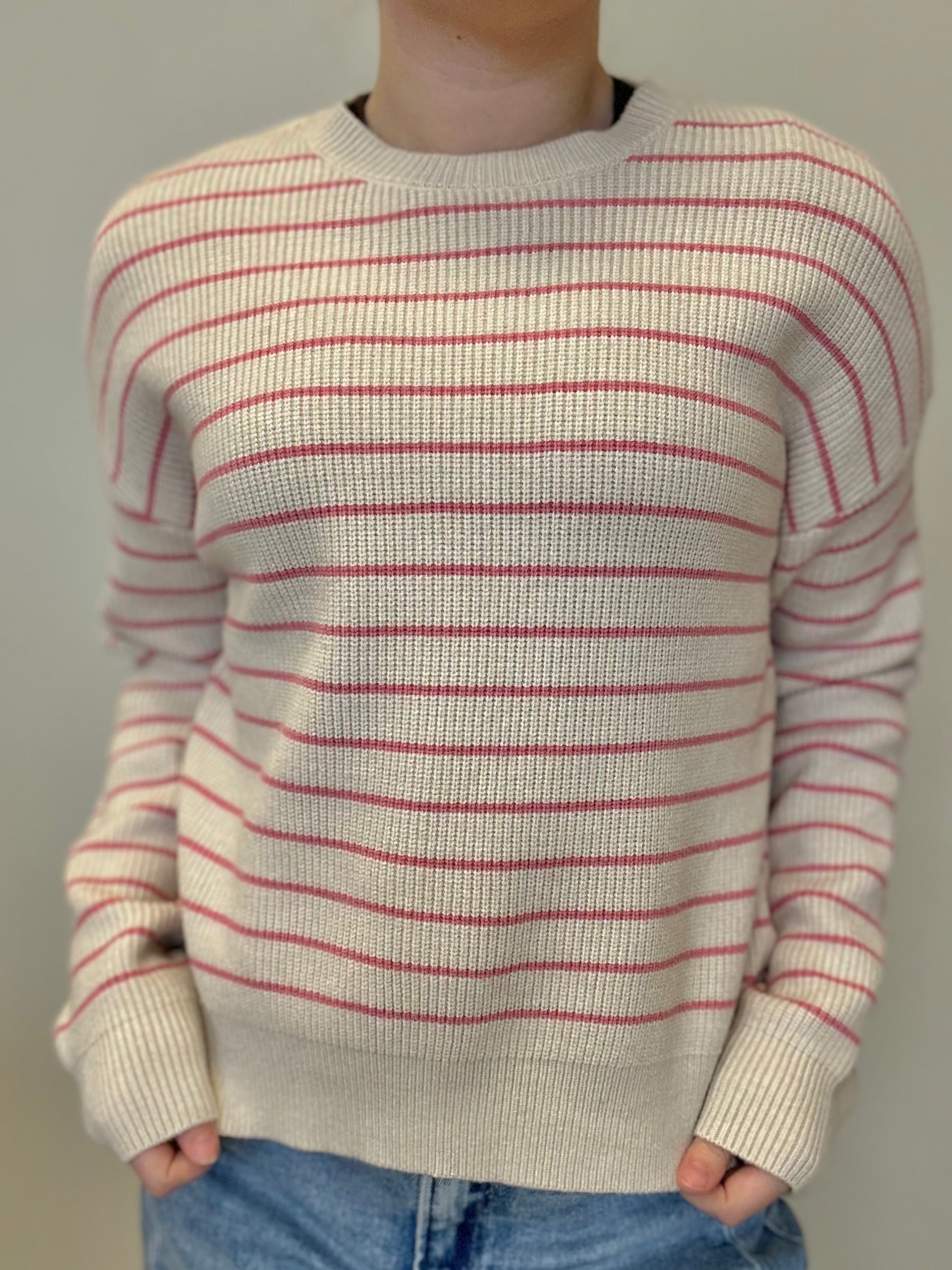 Bold confidence in this striking striped sweater that hugs your curves in all the right places. Crafted from luxuriously soft fabric, it features a fitted waist and snug wrist cuffs that create a flattering, intentional silhouette. Perfect for those who aren't afraid to show off their style with undeniable edge and sophistication.