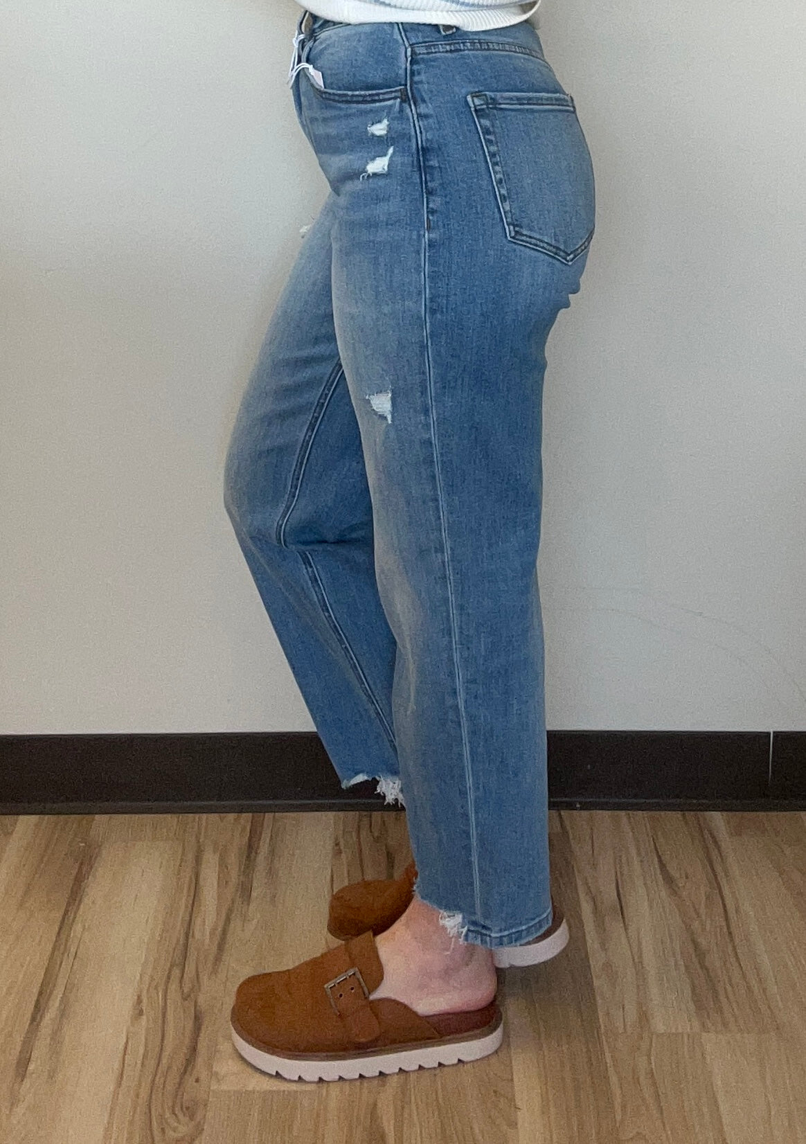 Elevate your denim game with these super high-rise barrel jeans. Featuring a comfortable stretch fabric, distressed detailing, and a relaxed barrel silhouette, they're designed for effortless everyday wear. The 11" rise and 28" inseam create a flattering, on-trend look that works with any outfit.