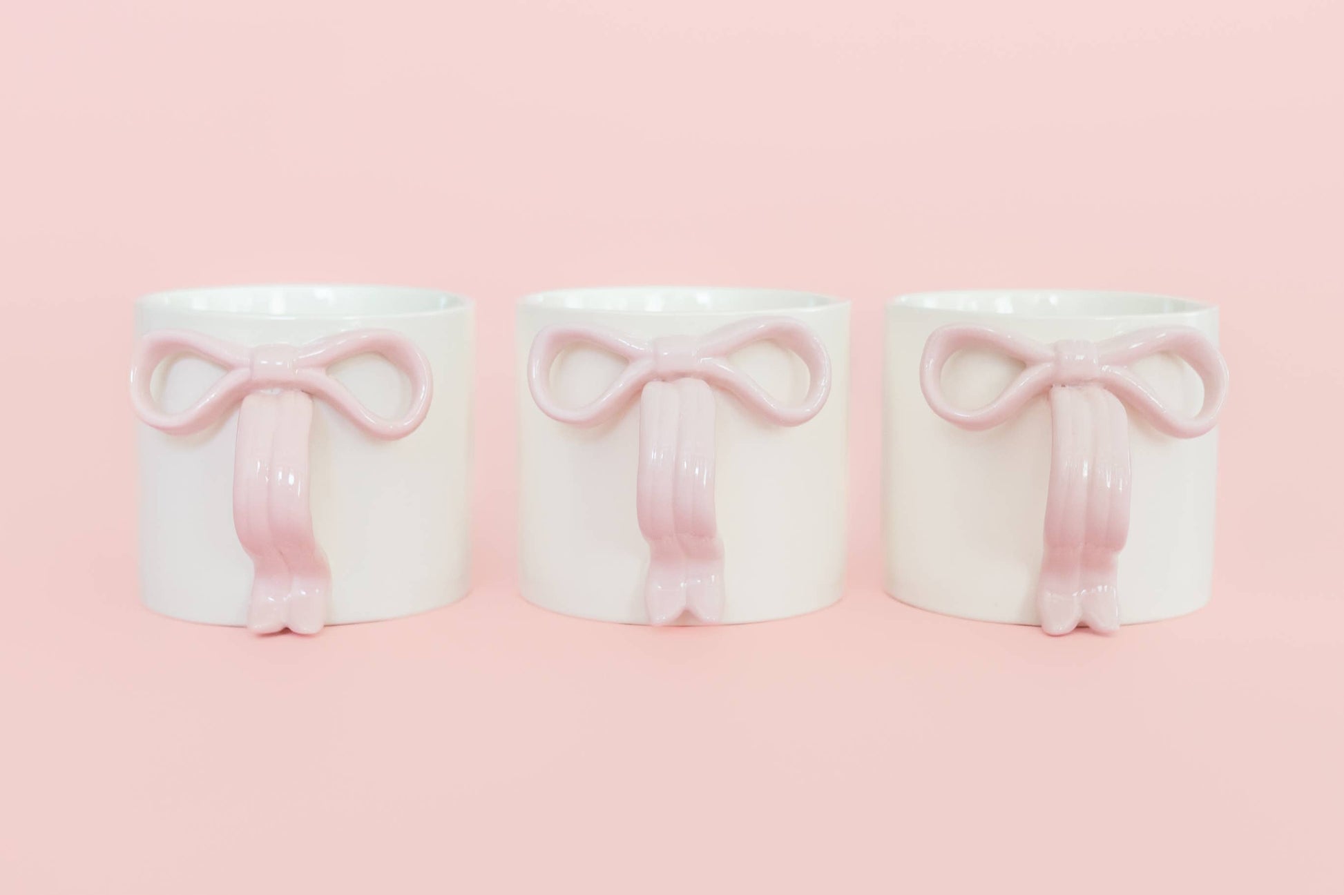 Blush Pink Bow Ceramic Coffee Tea Mug with Ribbon Handle