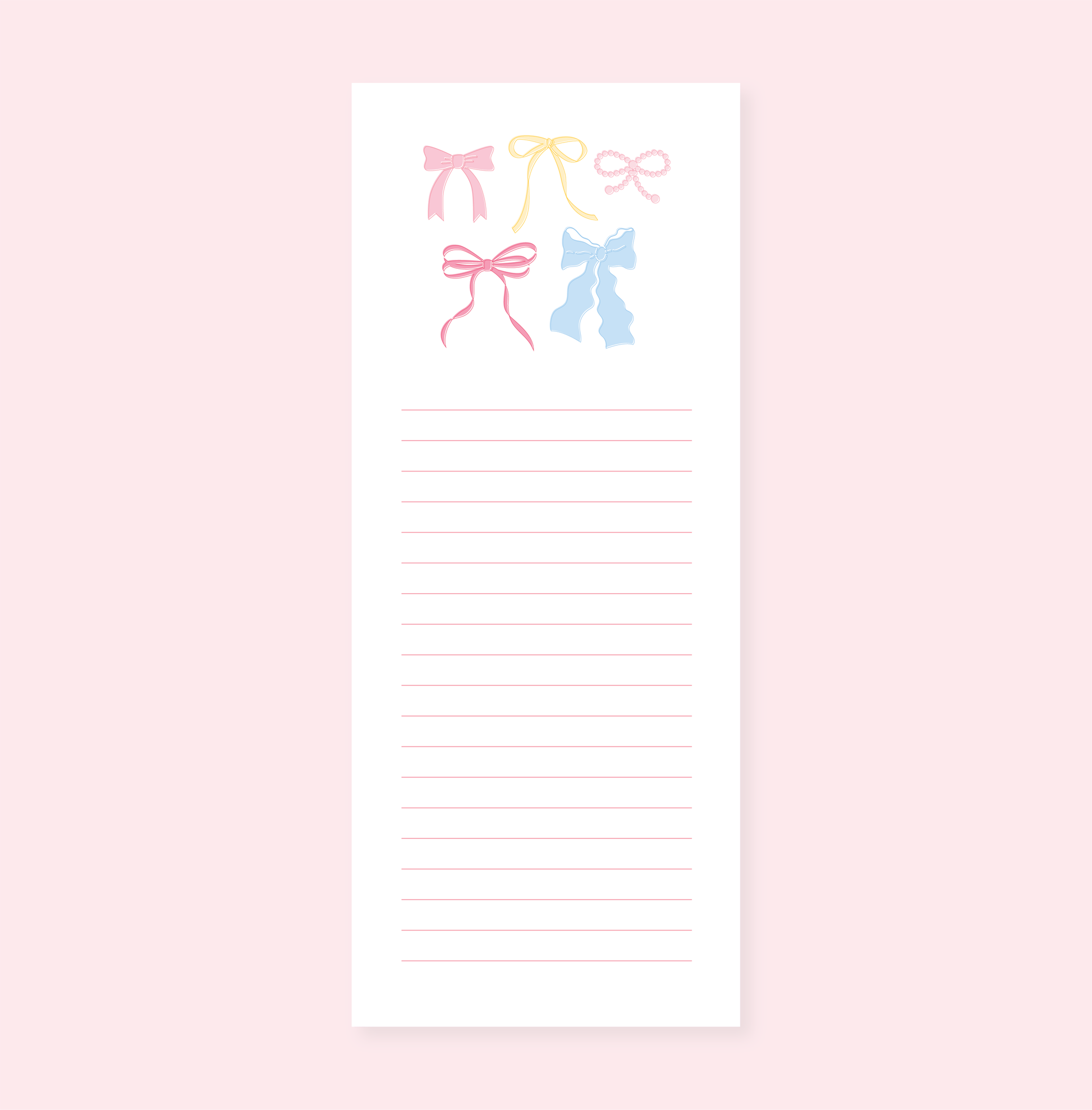 This Pastel Bows List Notepad is perfect for jotting down notes, to-do lists, or reminders, adding a touch of sweetness to your everyday tasks.