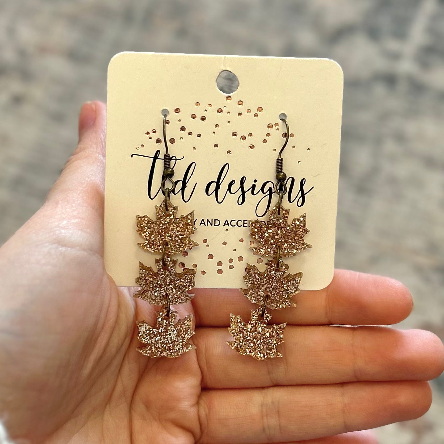 Be bold with our Fall Triple Leaves Earrings and admire the intricate design that makes them so unique and special. Crafted with gold-plated metal, these earrings feature three leaf detailing, adding a subtle elegance to any outfit.
