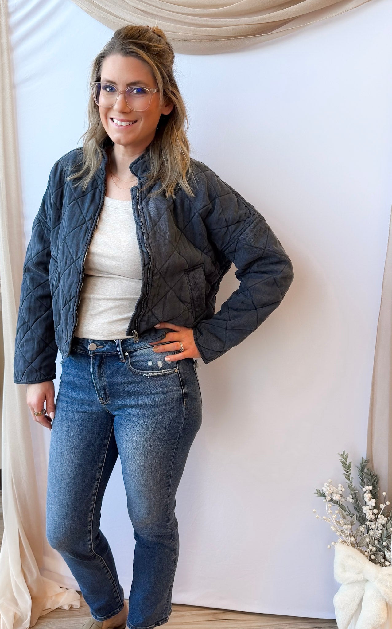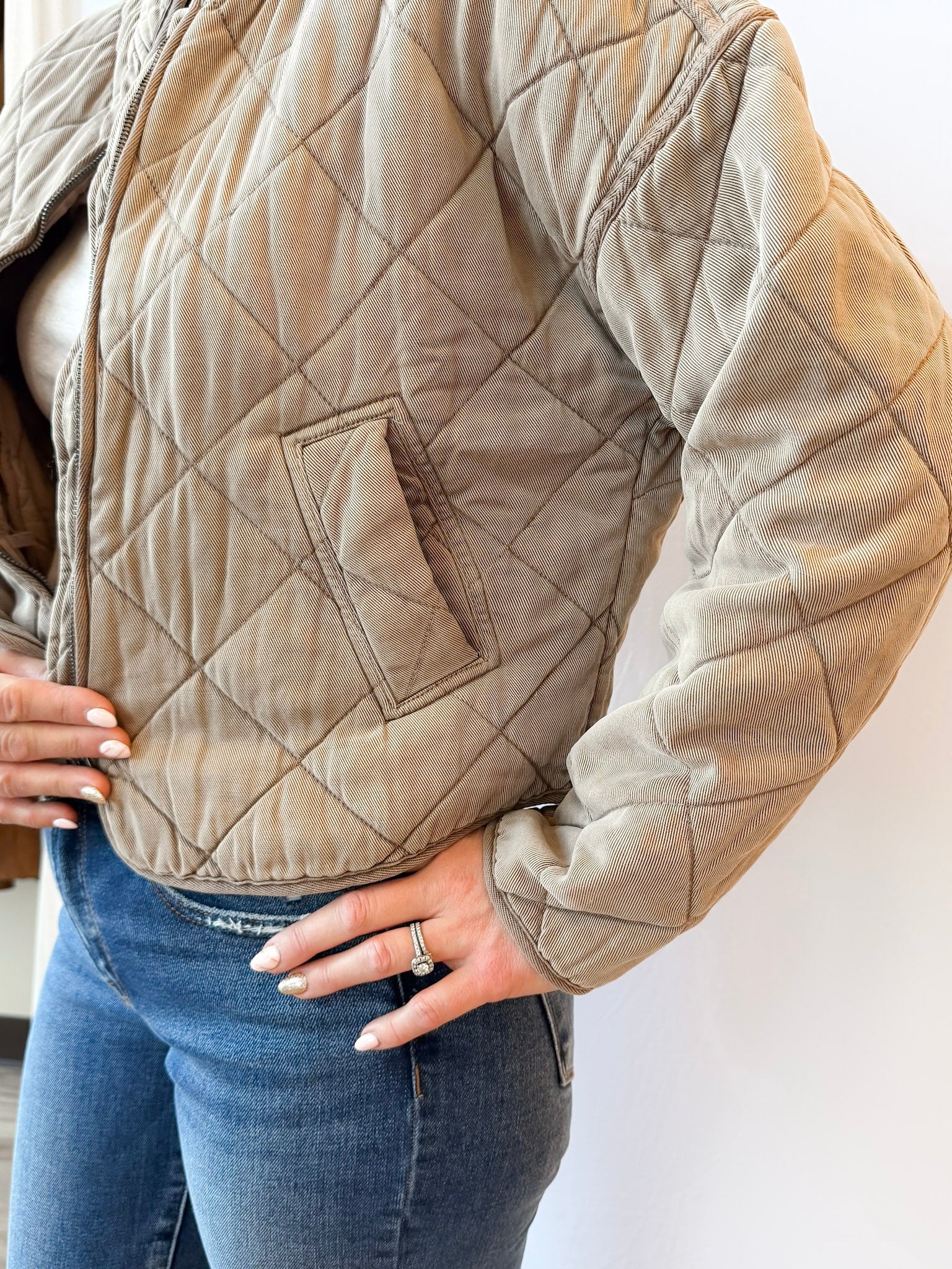 This cropped quilted puffer jacket commands attention with its bold design. Featuring long sleeves and a relaxed drop shoulder fit, it offers both comfort and edge. Equipped with front side pockets and a zipper closure, this jacket is the ultimate fall and winter must-have for those who dare to stand out.