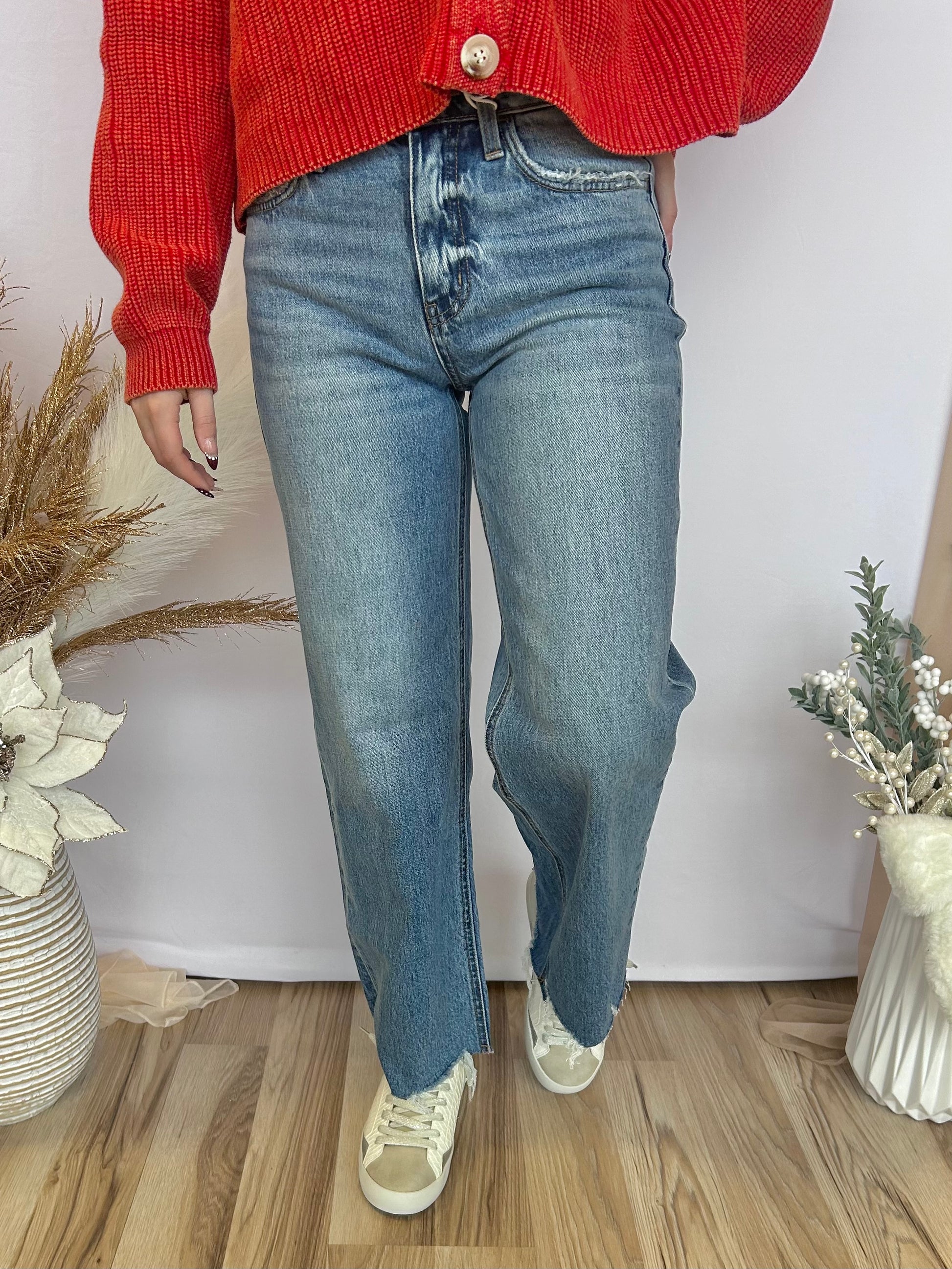 The elevated waistline flatters while the premium fabric moves with you, blending fearless style with everyday wearability. DESTRUCTION, ANKLE LENGTH, MEDIUM WASH, WIDE JEANS