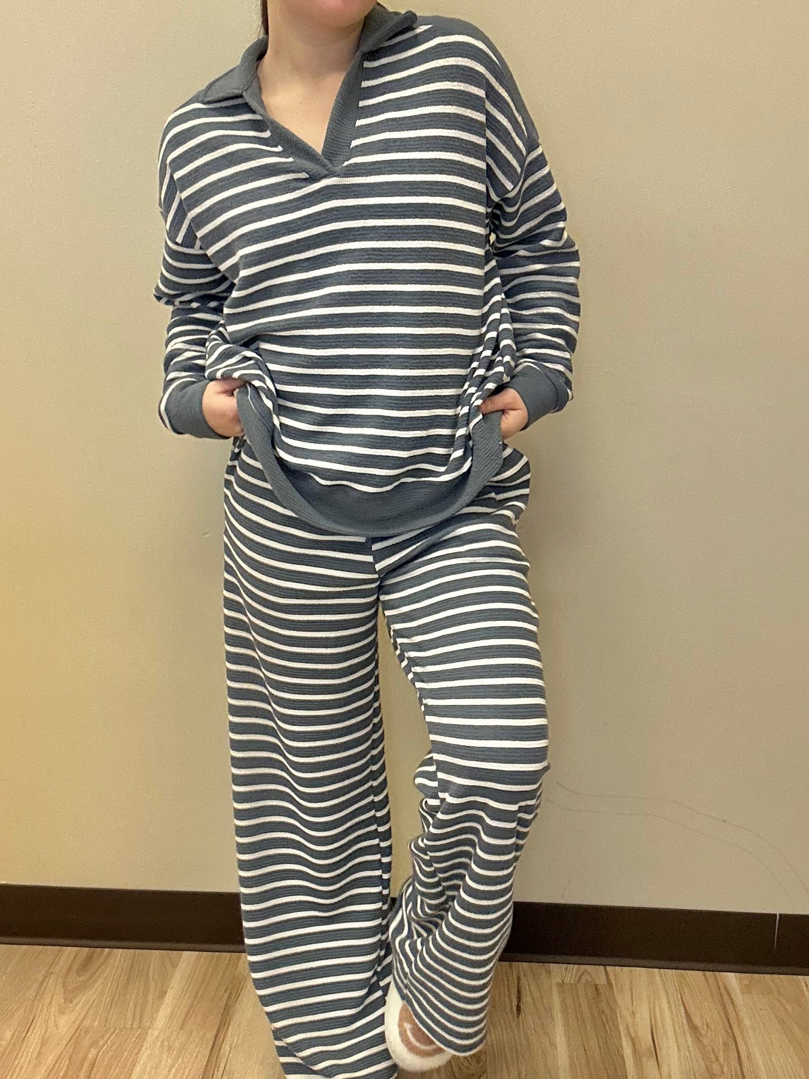 This daring knitted long-sleeve top features bold stripes and a flattering V-neckline for a striking, confident look.