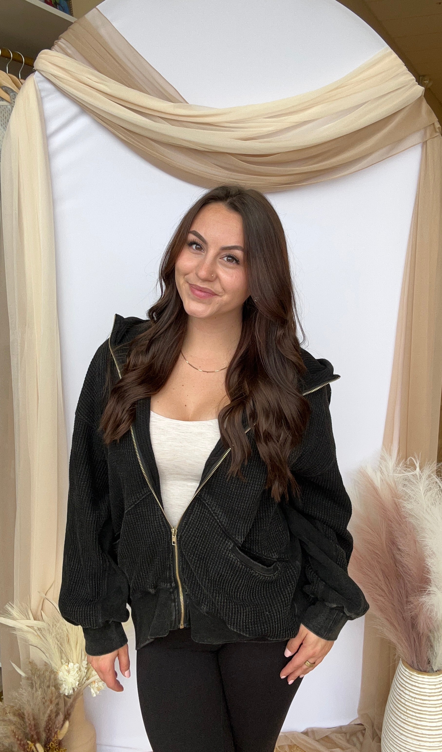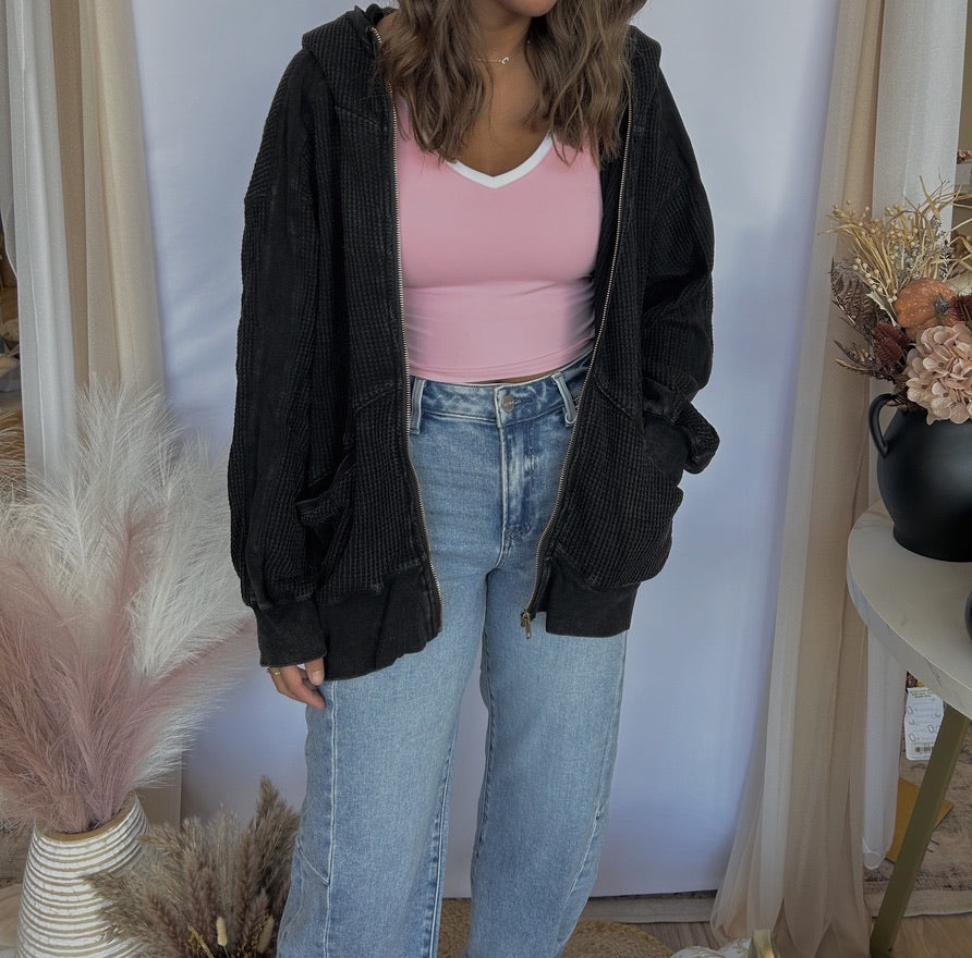 The thermal waffle knit zipper hooded jacket combines cozy comfort with Western style. Made from breathable thermal fabric, it’s perfect for cooler weather. The textured waffle knit adds visual interest, while the zipper front and hood offer versatility and warmth. Ideal for casual outings, this jacket is a stylish, practical choice for chilly days.